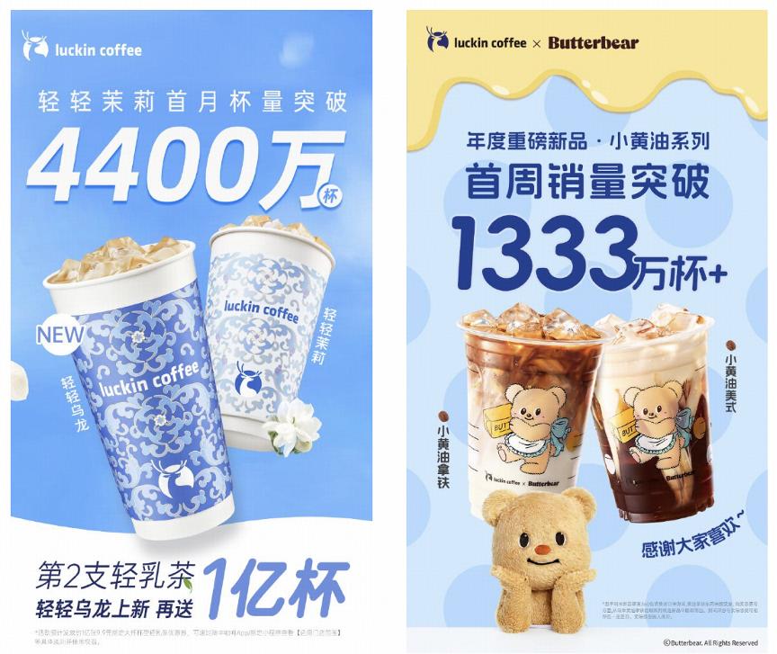 小黄油系列产品选择了与产品名称相近的表情包黄油小熊合作。通过IP的社会话题和自发传播,首周销量突破1333万杯。