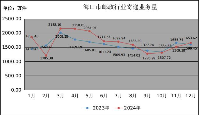 小布从海口市邮政管理局获悉,2024年,海口市邮政产业收发业务量累计达到20167.4万件,比去年同期增长6.12%。其中,快递业务总量达到13544.2万件,比去年同期增长7.91%。