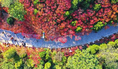 火炬树、红叶女贞、红叶李等红叶在南翠屏公园正浓。