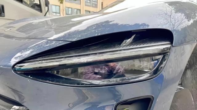 大灯组看起来很帅,尽管大灯的整体形状和形状 SU7 类似地,保留了家庭式的设计语言,但是大灯的上部设置了风道孔,看上去很有攻击性。