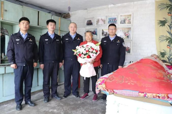 图为父亲节期间,大岱边境检查站民警探望干娘于美。