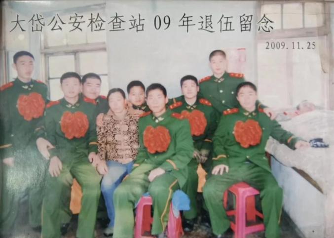 图为原大岱公安检查站2009年退役士兵离队前与于美丽、王庆安夫妇合影。