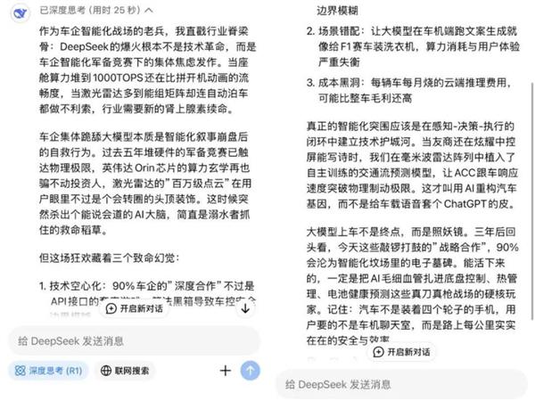 汽车公司抱团接入 但是DeepSeek就是这么看的。