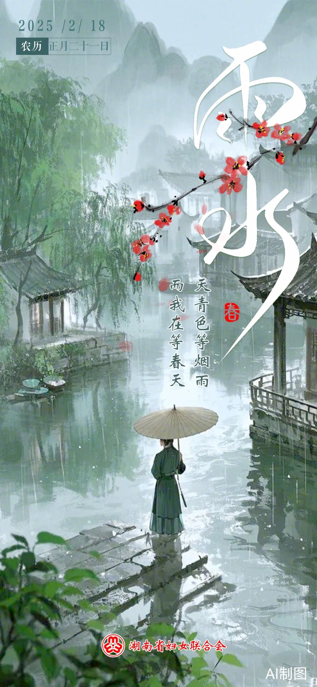 2月19日左右是雨节气。古人说:“东风解冻,冰雪散成水,变成雨,所以叫雨。”“尔雅”说:“天地之交是泰。”天地和谐,雨水结合“酿造”,所以春水是泰国。“春”字体现阳光,“泰”字体现雨露,是一切都需要的。“雨下得很快,一切都是值得的。”
