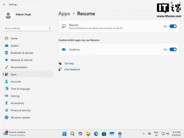 除调整文件资源管理器外,微软仍在逐步推出类似苹果“接力”的“恢复”(Resume)"功能,这个功能已经测试了几个月。起初,“恢复”功能是基于 OneDrive 实现,但未来有望与第三方服务(例如 WhatsApp 和 Spotify)适配。