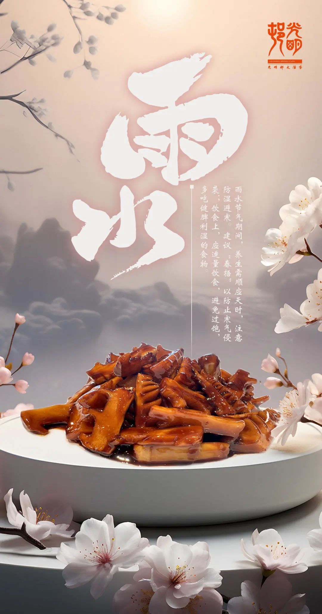 俗话说“不时不吃”,春笋是雨节气的又一美食。春笋鲜嫩可口,营养丰富,被称为“菜中之王”。因此,春笋成为雨节气餐桌上的一道美味佳肴。