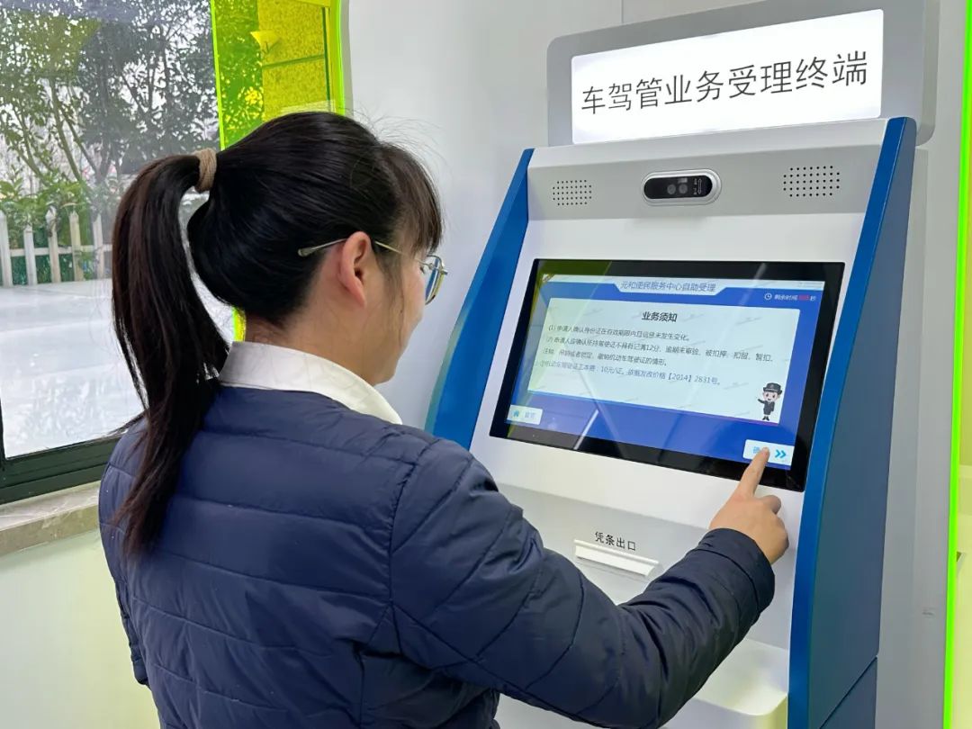 在延续原居民身份证自助办理和领取的基础上,本次升级的“公安业务自助办理区”增加了驾驶员自助体检机、车辆驾驶管理服务受理终端和驾驶证自助认证终端,完成了江苏省驾驶证到期换证、丢失补证、损坏换证业务的一站式办理。