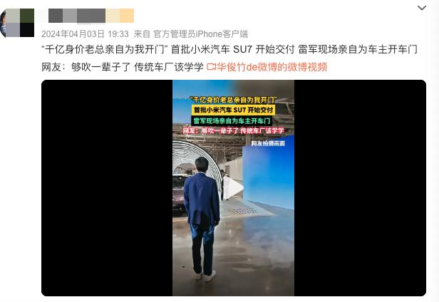去年的小米 SU7 Max 在交货阶段,雷军亲自为车主开门、送花,也在网上掀起了巨浪。