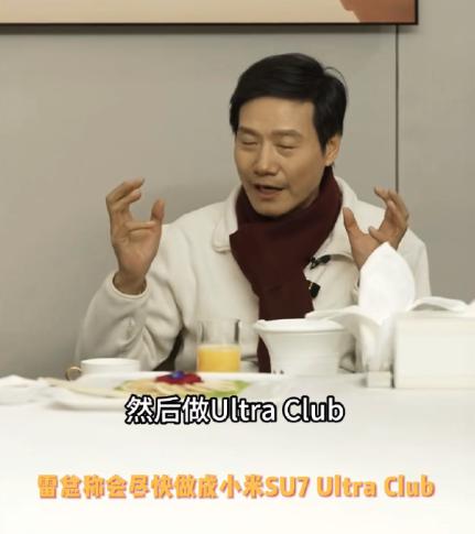 录像中,雷军和准车主坐在一张桌子上,边吃边聊,现场为大家介绍新车,还表示即将成立。 " 小米 SU7 Ultra Club " 骑手俱乐部。