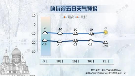 十八日晚上至十九日白天:哈尔滨东部阴天有雪,其他地区有时晴天多云。