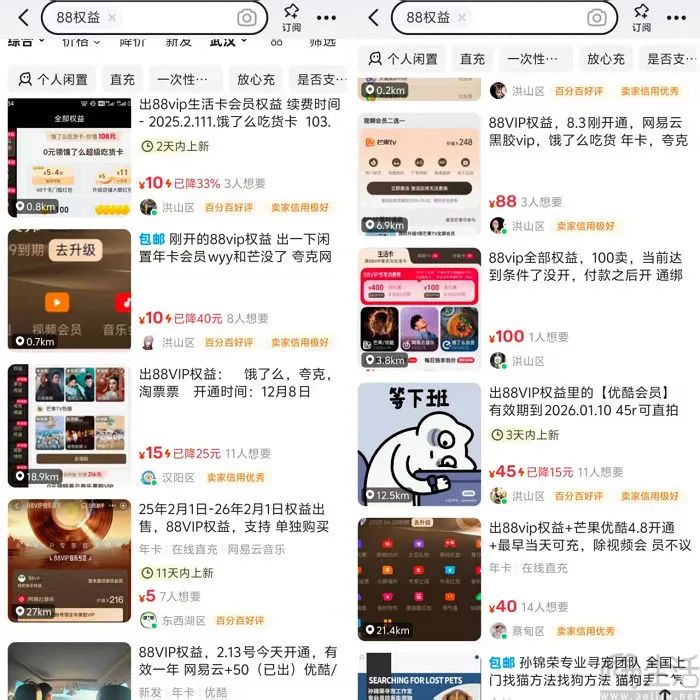 这也在一定程度上表明,对于用户的实际使用来说,88VIP大而全的权益体系可能已经产生了价值过剩。而且一旦用户通过转售不需要权益实现“回血”,在会员费这个“沉没成本”的驱使下完成更多交易的可能性也会下降。