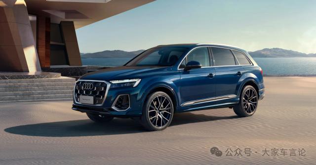 下一步是奥迪 Q7,参考价 60.98 万的 2024 款 45 TFSIquattro S line 黑色武士型,这个和 X5、GLE 同级别豪华品牌进口中大型 SUV,过去的落地都要到达 60 万,而且现在落地不到了。 50 万了!