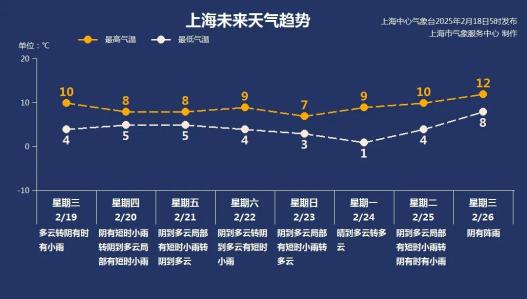 申城今天(2月18日)进入“雨水”节气,但雨水还没到,主要是阴天。与昨天相比,早间气温明显下降,城区在4℃以上,郊区在2℃-4℃之间。白天,阳光有助于温度升高,预计最高气温可达11℃周围。东北风3~4级,相对湿度90%~40%。大家赶紧洗晒,因为明天又要下雨了。