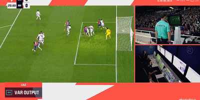 在第28分钟,伊尼戈在禁区内后点被放下,裁判看了视频回放判罚点球,莱万稳中点球,巴萨1-0领先巴列卡诺。