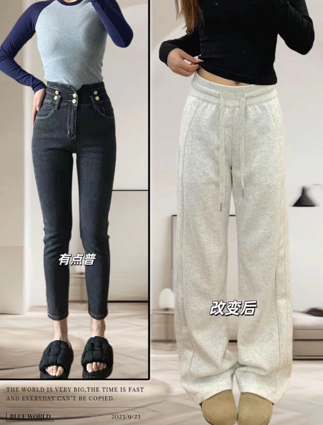 高腰拉伸比例,侧线显腿长,微藏赘肉