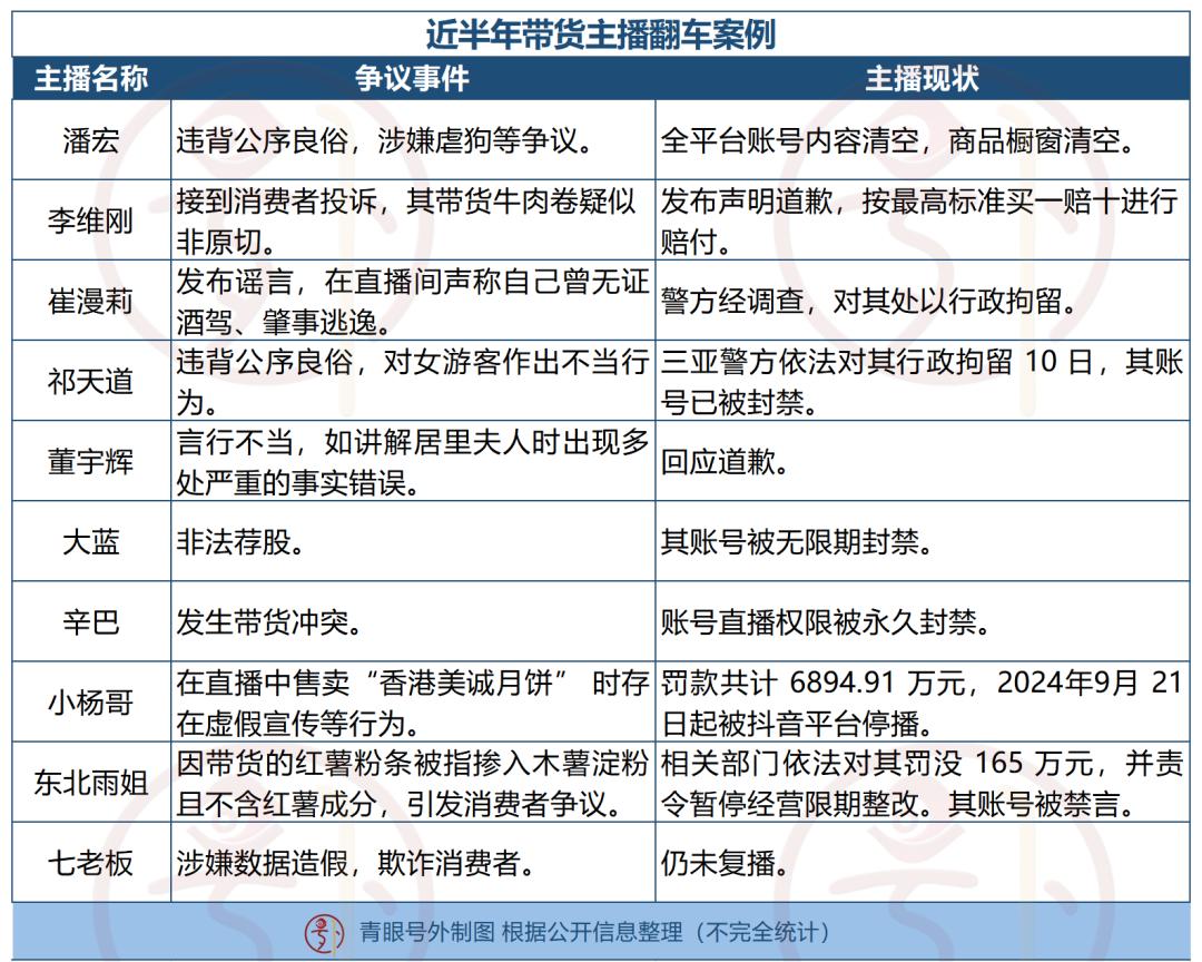 经过梳理,发现在过去的半年里,10多位带货主播因为不同的原因不断翻车,包括健身网络名人李维刚和“妙音娘子”余莺儿饰演崔漫莉和“祁天道”、“疯狂小杨哥”董宇辉和“疯狂小杨哥”仍然陷入香港月饼事件。