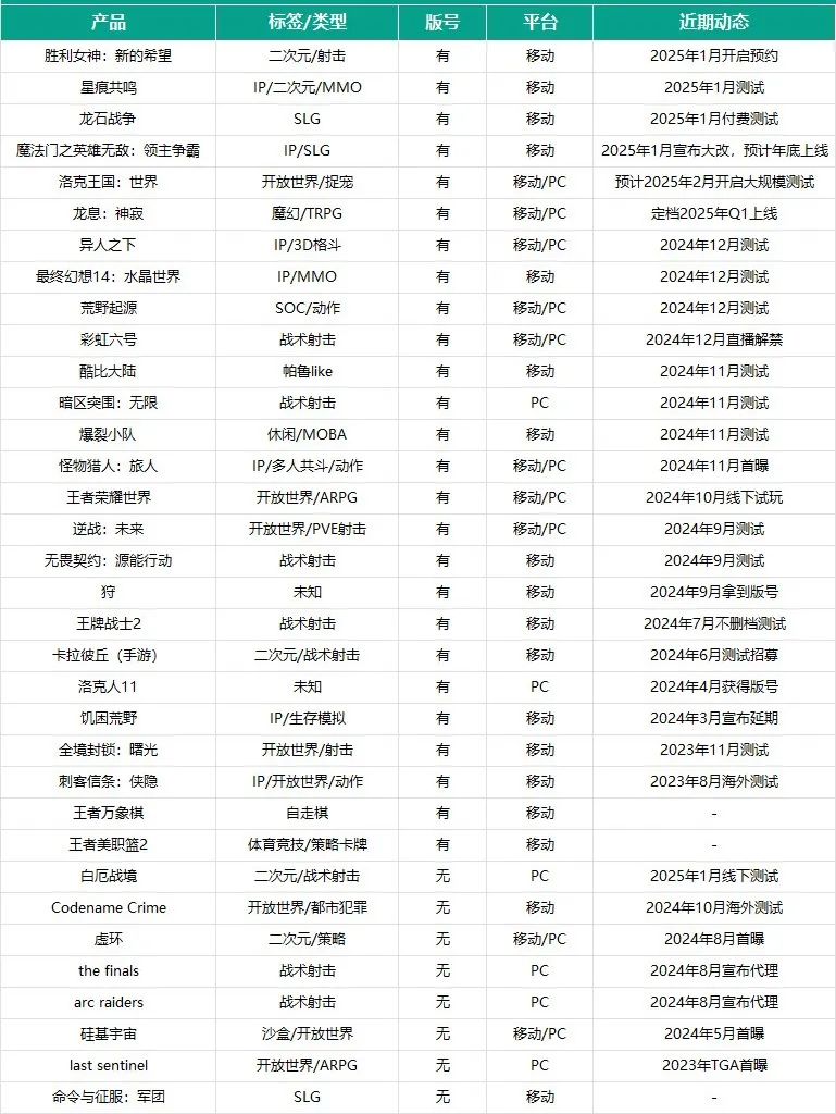 在新的一年里,腾讯拥有35款产品,其中24款已经获得。其中也有很多新产品,比如《王者荣耀世界》《异人之下》《胜利女神:新希望》,在各自的品类下备受关注。