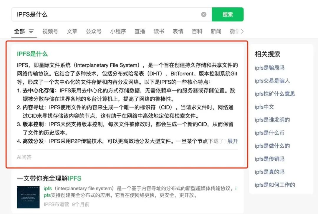 2024年下半年,基于混合元模型的微信AI搜索服务突然闯入大众视野。微信用户在搜索界面提问时,微信不仅会正常返回微信官方账号的文章、视频号等信息,还会在搜索栏顶部显示AI整合的结果。