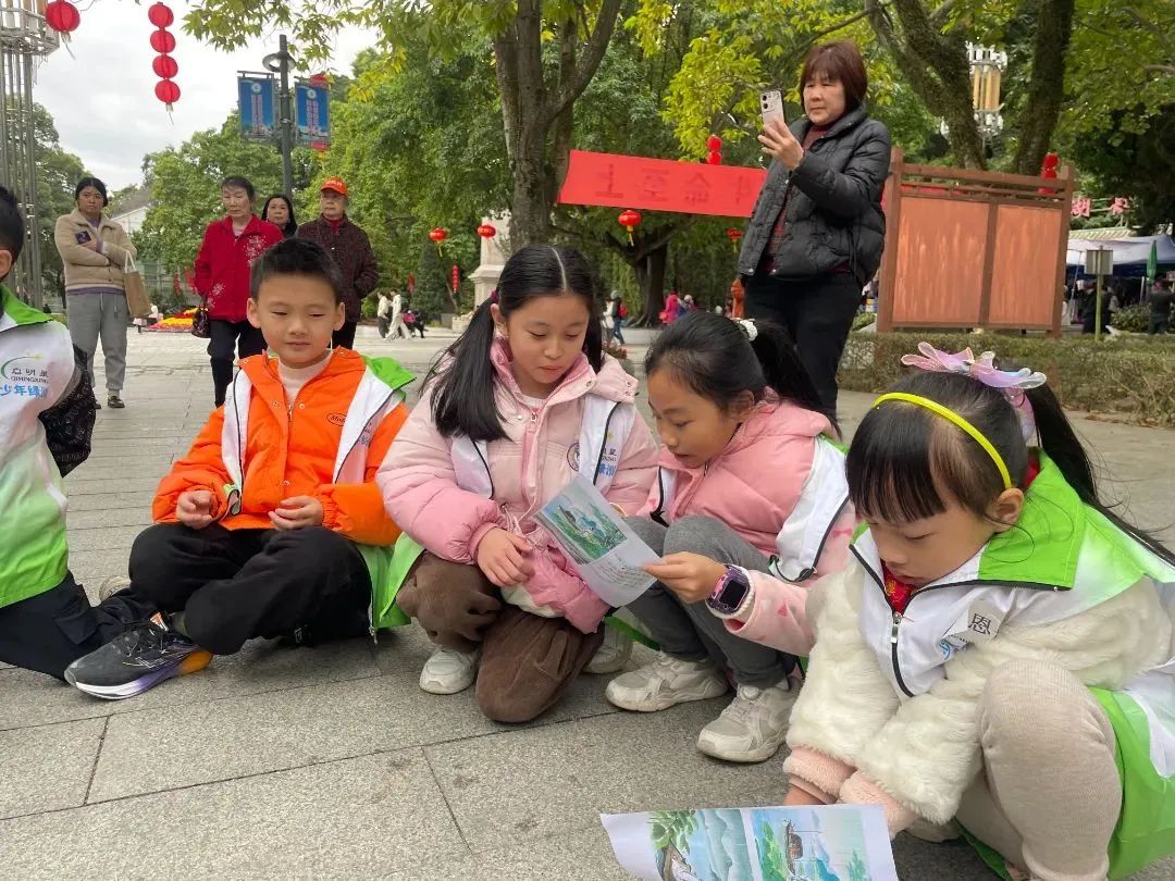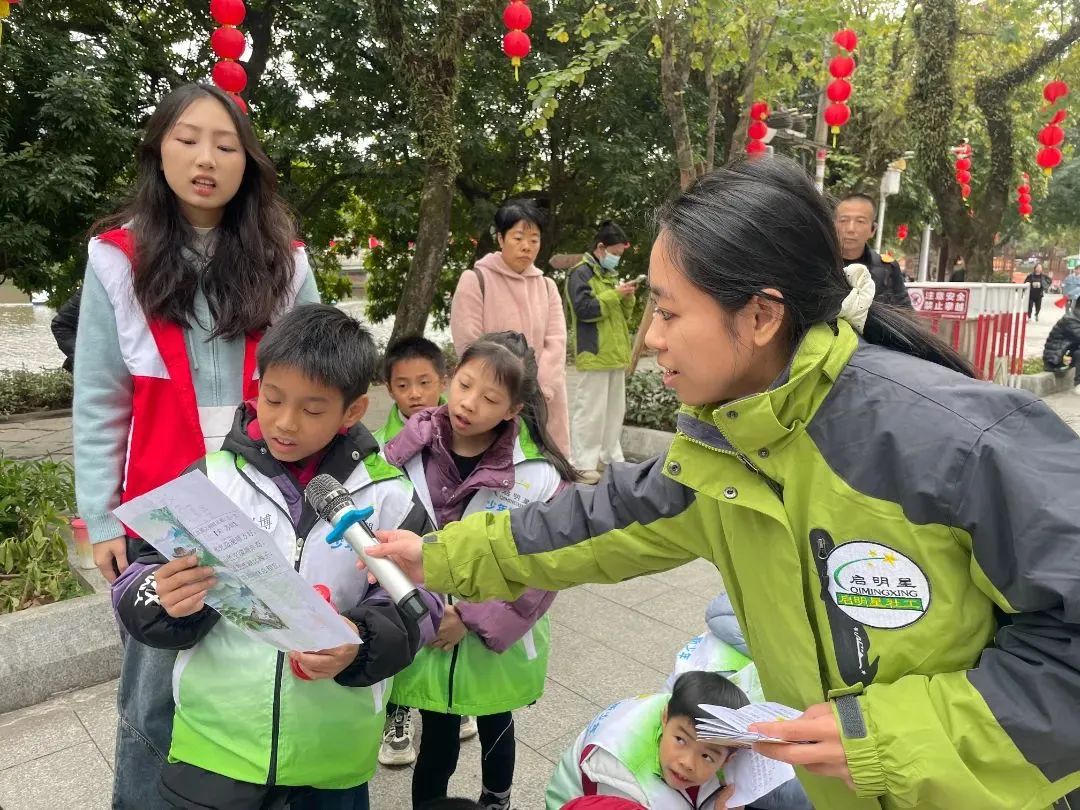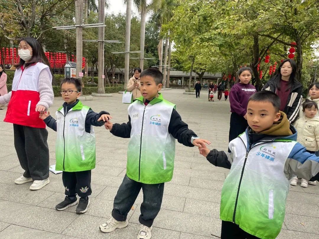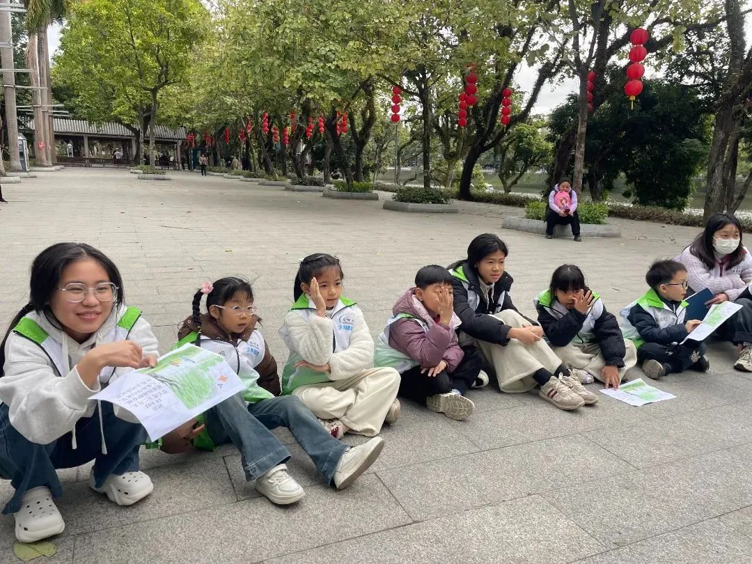 “草长莺飞二月天,拂堤杨柳醉春烟”,孩子们和社工一起朗读,眼前的春景悄然与诗中的画面重叠。孩子们的声音萦绕在大自然中,他们沉浸在古诗词中蓬勃的春天活力中。