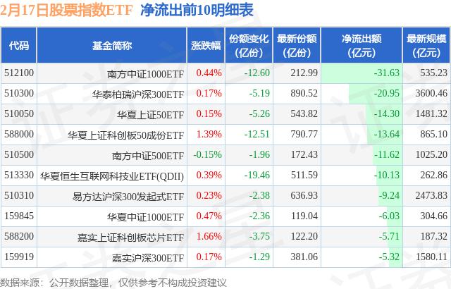 当天有 260 只股票指数 ETF 资金净流出出现在基金中,其中净流出排名第一的是南方中证 1000ETF(512100)减少了份额 12.6 一亿份,净流出额为 31.63 亿元。