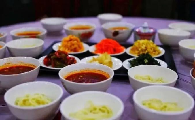 在庆阳农村,一个红白喜事的流水席往往可以持续很多天,几十张方桌一字一句地摆好。厨师指挥厨师,以每分钟十几碗汤的效率完成这种饮食行为艺术。