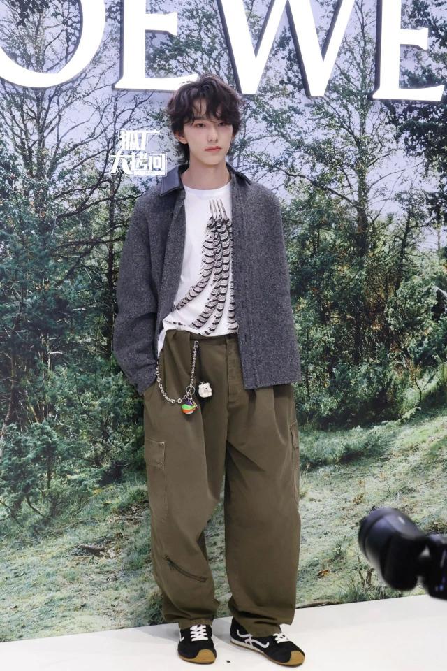 伍鹏活动生图,就像穿着不合身的衣服,尤其是裤子太长了。只能说品牌商安排的造型师如果多加注意就好了。