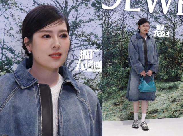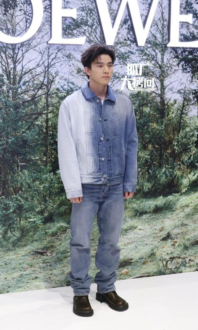 受欢迎的攀岩运动员伍鹏穿着浅蓝色牛仔套装。很明显,活动前拍的出发图(下图)很有时尚周刊的质感,看起来很高级。因此,这套衣服在生活图中的效果完全不同。