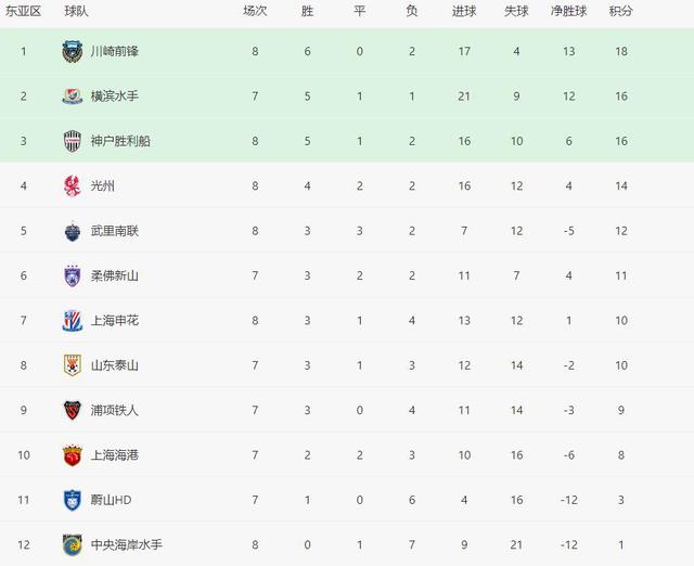 和欧冠一样,亚冠也在去年进行了改革,东西亚各自分为 12 队进行 8 这场比赛取代了原来的小组赛; 8 获得淘汰赛资格的名字。 7 轮战罢,中超 3 球队起伏不定,泰山 10 分排在第 7,海港 8 名第 9,申花则是 7 分第 10。