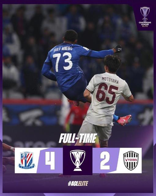 最后一轮申花率先出战对战。 J 双冠王神户胜利船;后者已提前获得出线权,并在最后一轮大幅交替。米内罗开场时,申花也没浪费机会。 2 分分钟闪击,并上演帽子戏法;再加上陈晋一的进球,即使被对手追逐, 2 球类,申花还是 4:2 取胜。8 轮回后排名第一 7 位置;但是还不能保证晋升的权利,反而要看明晚海港的情况。