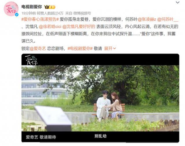 电视连续剧《爱你》发布预告,张凌赫帅出新高度,女主持人徐若晗初恋脸抢镜