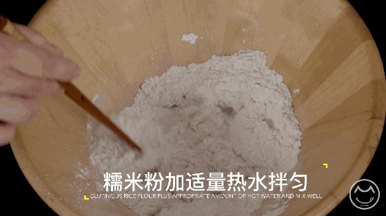 1. 在糯米粉中加入适量的热水搅拌均匀,静置备用。