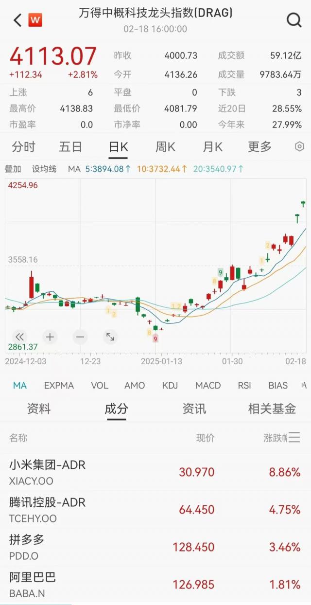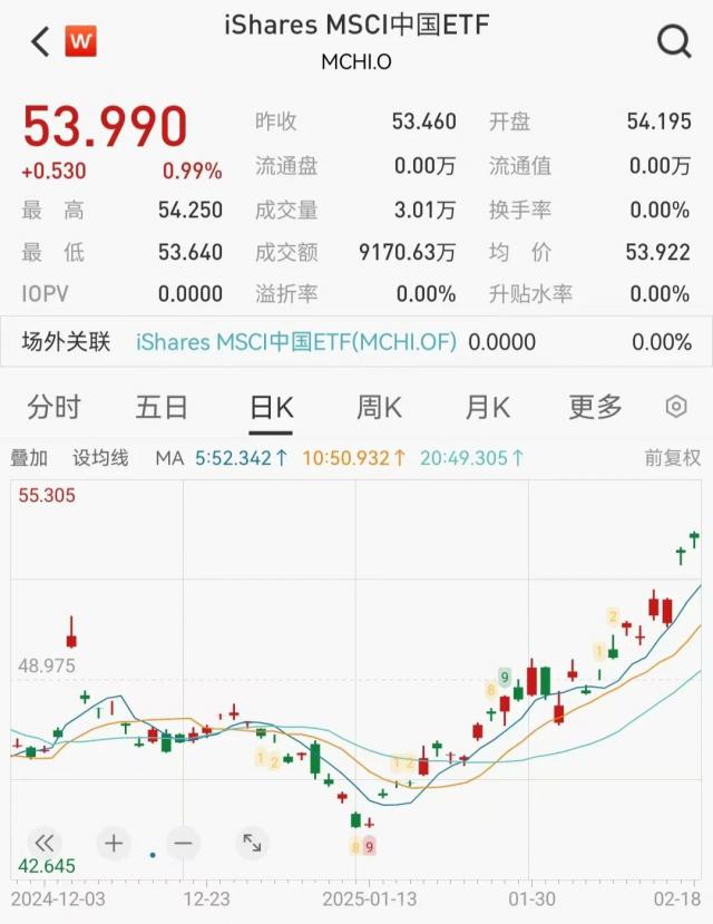 星期二,美股表现一般,而中国资产继续受到资金的青睐。Wind 行情显示,iShares MSCI 中国 ETF(MCHI)自本轮低点以来,累计上涨超过了 23%,创去年 10 从月中到现在,新高。万得中概科技龙头指数(DRAG)这一轮上涨超过了 38%,一举创下 3 年多新高。小米集团,腾讯控股,拼多多,阿里巴巴都在上涨。