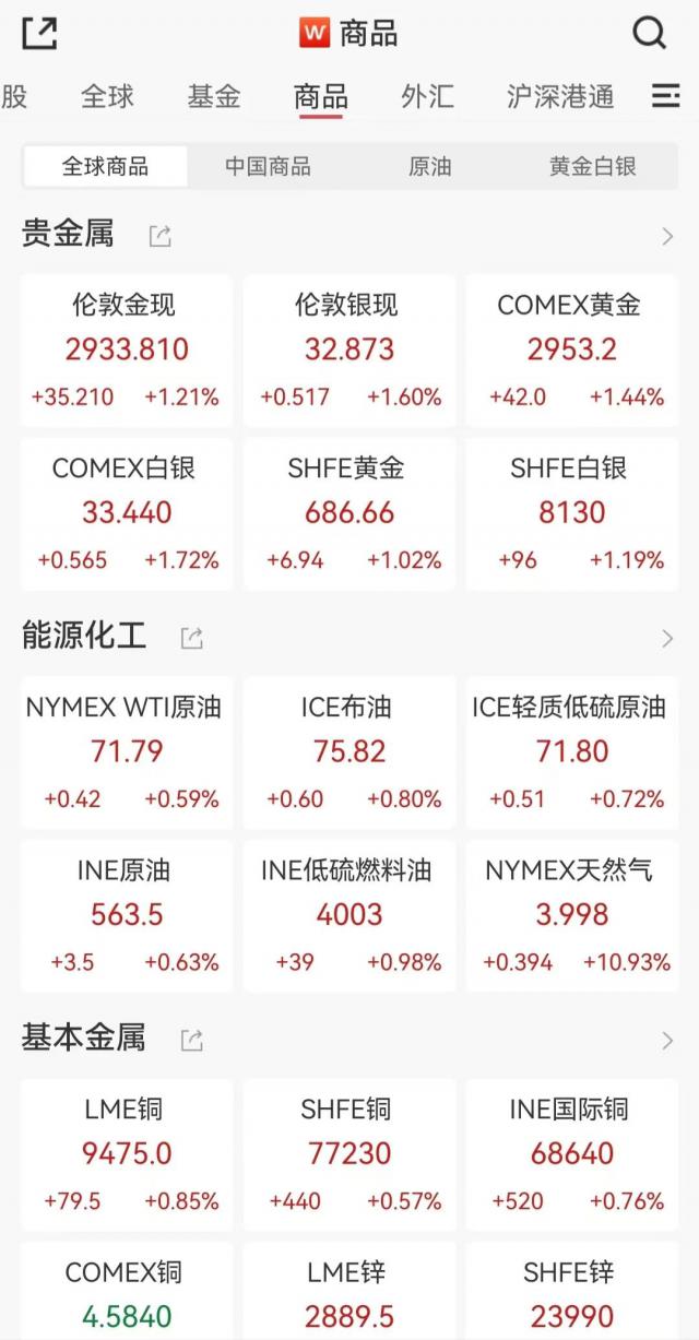 Wind 市场表明,截至 2 月 19 日早间 5:30 许,COMEX 黄金大涨 1.44%,再次逼近历史新高,伦敦金现在也上涨超过了历史新高。 1%。另外,白金、石油、天然气、锌等大宗商品都实现了良好的上涨。