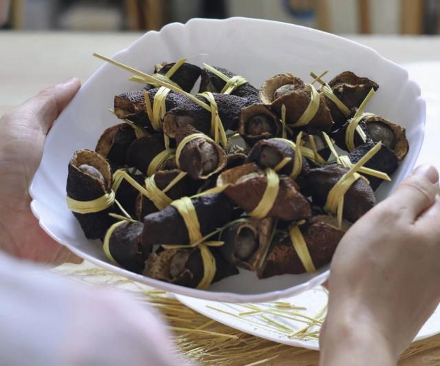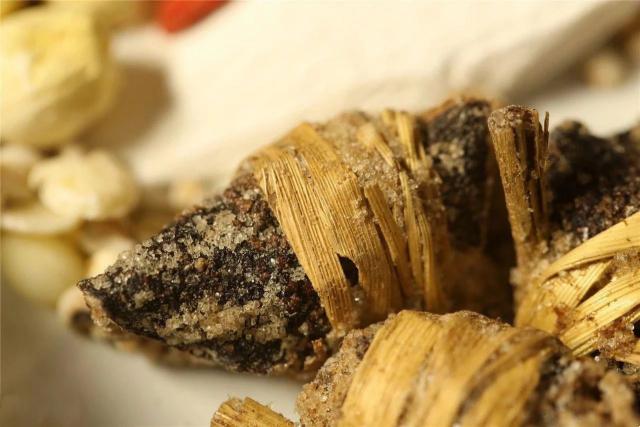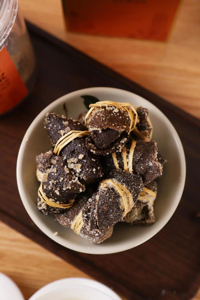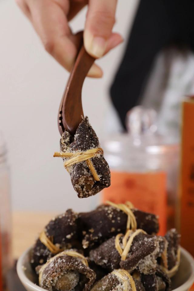 采用传统古法炮制,粗盐腌制 3 超过2000年,再用陈皮做“衣服”,用咸橄榄包裹,草草为绳索,捆绑牢固后再用粗盐腌制。