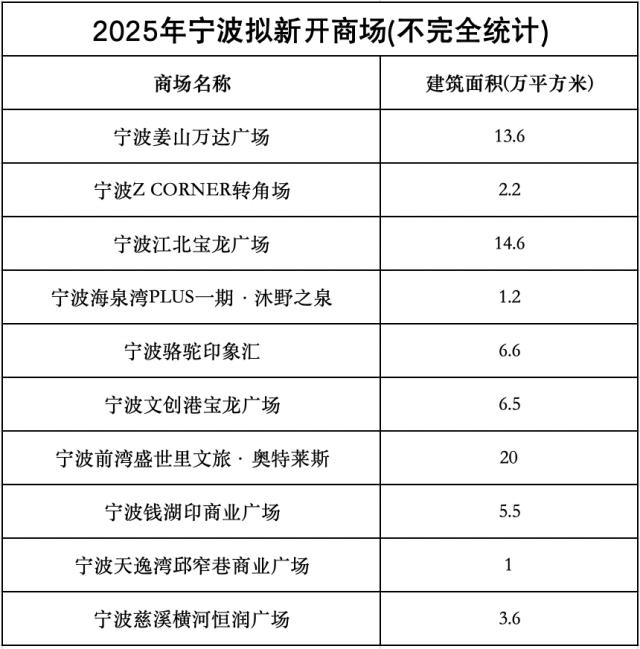 根据不完全统计,2025 2008年,宁波计划开设商场。 10 个,总规模超大 70 万平方。