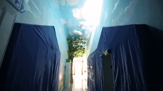 利用身临其境的空间投射和人机感知交互技术,布局模拟应急避难广场、应急避难生活、现场应急救援和简单的救援体验空间,将半实景构建与虚拟成像相结合。