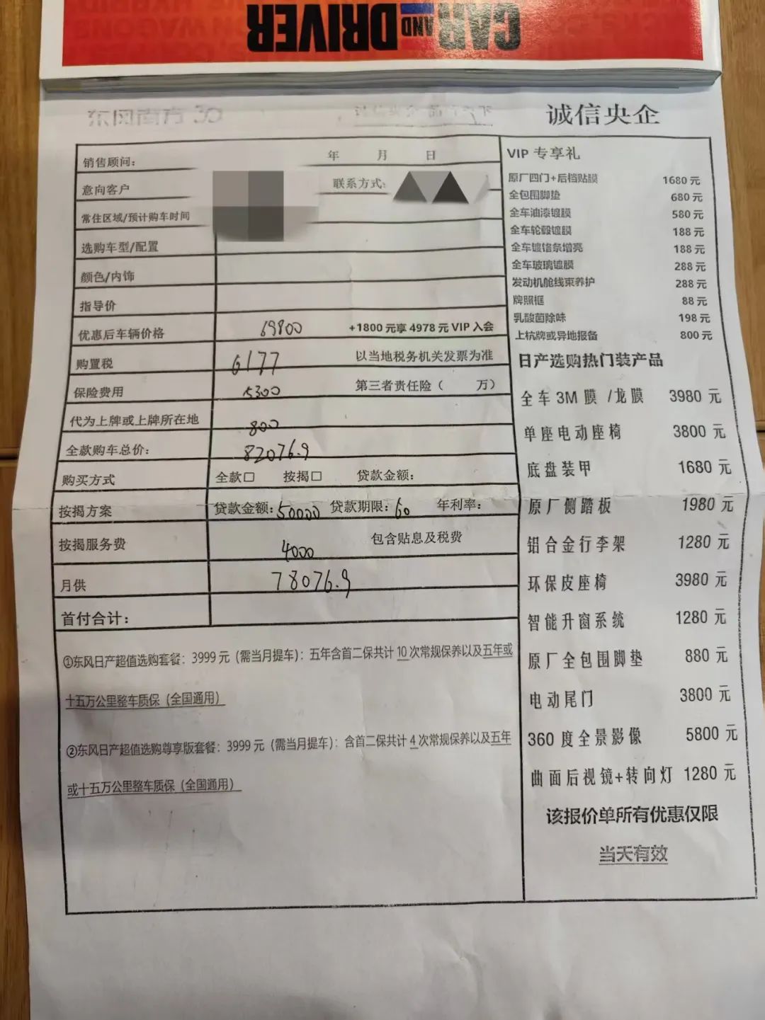 而且报价表旁边的选择配件,价格更是超乎想象,比如升级。 3980 块的 3M/龙膜,我们汽车部的一个在 4S 呆过的同事透露,4S 商店购买窗膜并不会选择品牌中最顶级的型号。,大多数购买价格只有几百元。