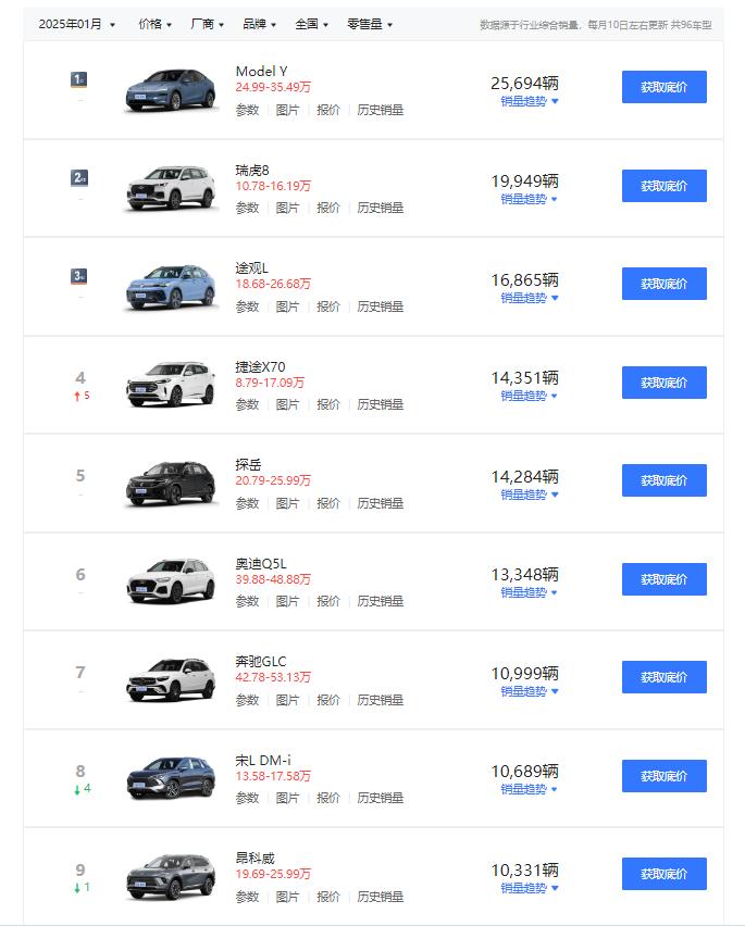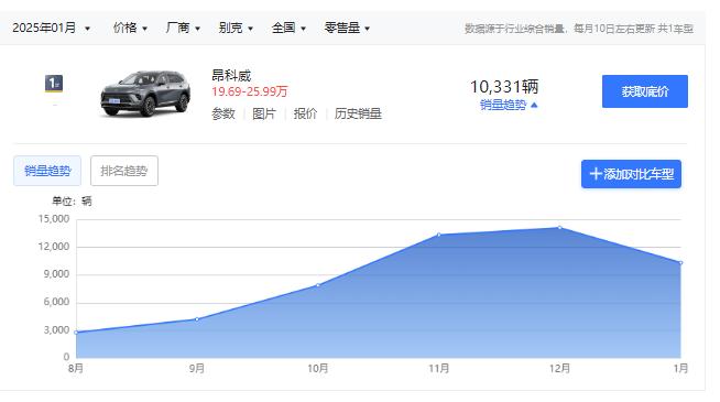 接着是一系列的一口价格,什么? 26.59 万凯迪拉克 XT5、16.99万的昂科威,都非常显著地提振了销量,昂科威更是直接从吊车尾挤进了中型车销量榜前十。