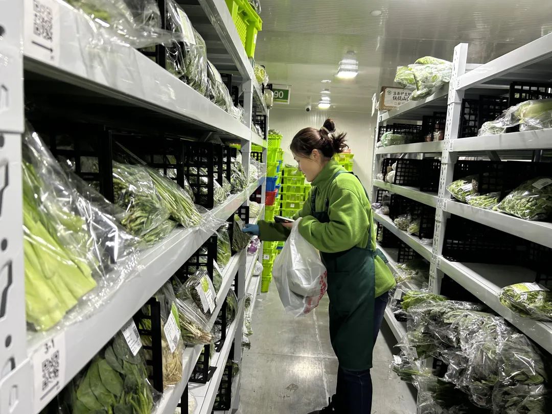 不仅市场摊位充满了春天,线上生鲜平台也紧跟季节,推出了春菜区,为市民餐桌增添了更加多样化的选择。在位于立新路的丁咚杂货购物申霞站网站上,记者看到工作人员正忙着对线上订单进行分拣和包装。