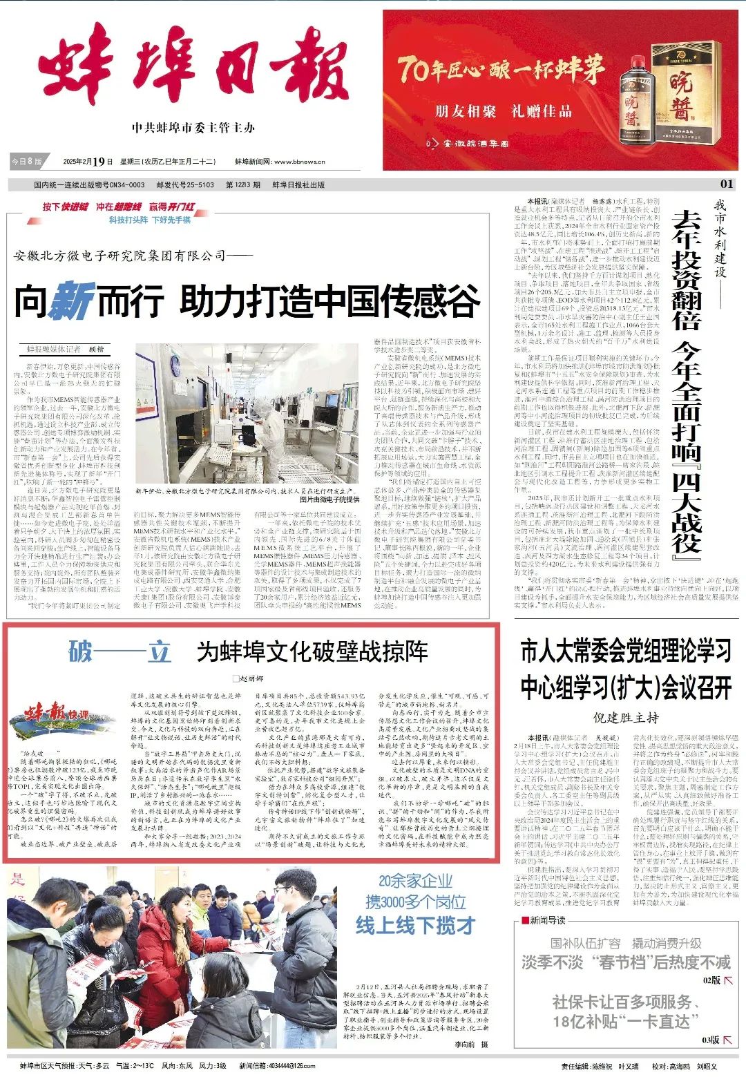 2025年2月19日《蚌埠日报》01版