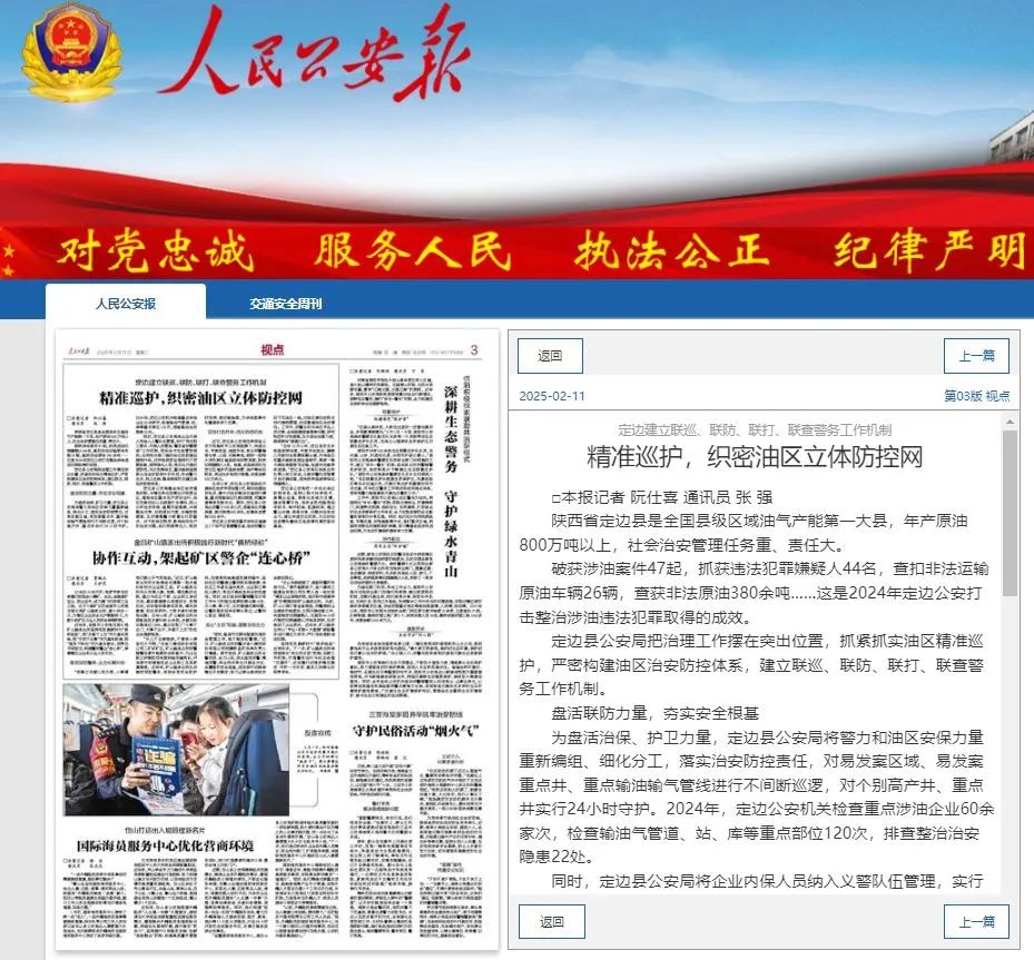 《人民公安报》刊登 | 定边公安:精确巡逻,织密油区立体防控网络