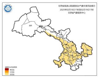2025年2月18日17时,甘肃省气象局、甘肃省交通运输厅、甘肃省公安厅交通管理局联合发布甘肃省道路结冰气候风险预警提示:预计未来24小时内,将受到降雪天气的影响,我省G30连霍(永登-古浪段、文峰-徐家磨段)、G6京藏(刘寨柯-海石湾段)、G2012定武,G1816乌玛,S60西会,G75兰海(兰州-停昌段)、尹中、G2201南绕城、S34双达、S32临大、S14陇渭、S42陇漳、S46通定、S25静天、G22青兰、G8513平绵(华亭-静宁段、天水-秦安段)、在省道、省道、县乡级道路上,S11泾华、G85银昆、S28灵华、G70福银、G69银百、S15吴平、S38王夏等高速公路路段有积雪或结冰。稍微影响一下交通出行。