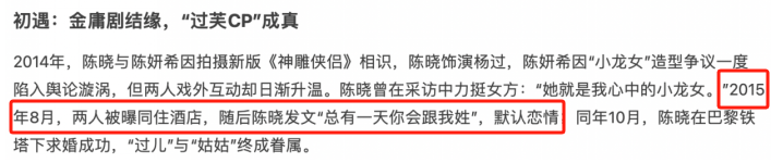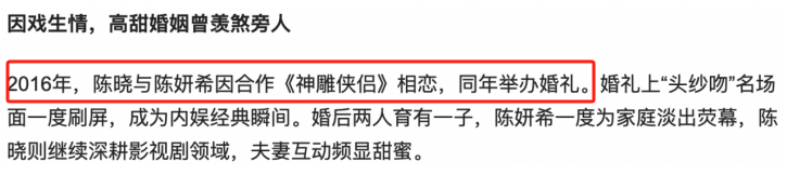 该媒体的AI稿称:“2016年,陈晓和陈妍希因合作《神雕侠侣》而相恋,同年举行婚礼。”而且笔者与DeepSeek交谈时,得出的结论是2015年8月两人默认恋情。经笔者核实,2015年8月27日,两人分别在个人微博上公开恋情。