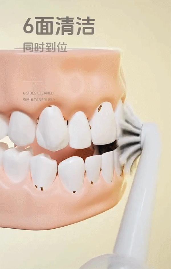 6 同时清洁个面,传统牙刷具有效率 6 倍,刷牙不再需要时间和精力 ~