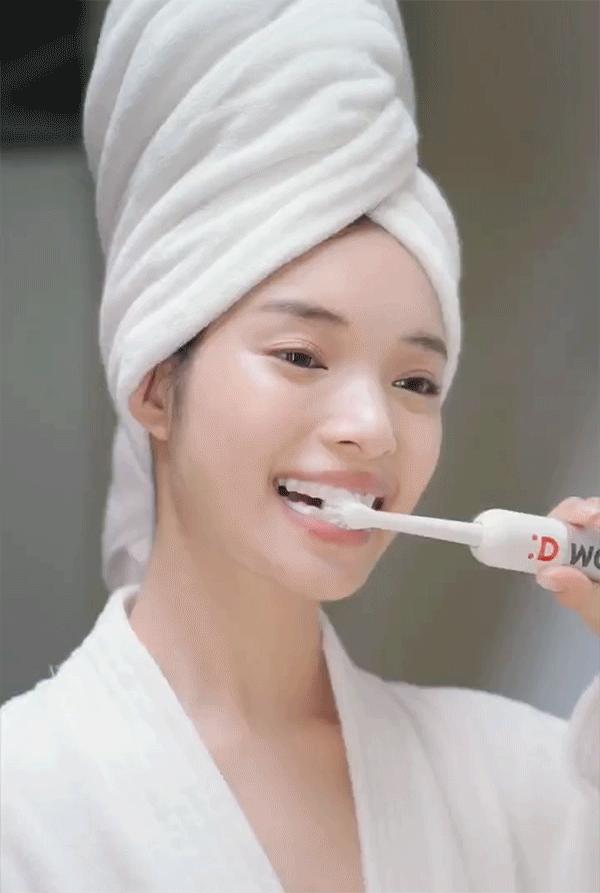 只需轻轻咬合刷头,刷毛即可。没有死角包裹您的牙齿表面,很容易触到平时刷不到的地方。✔️