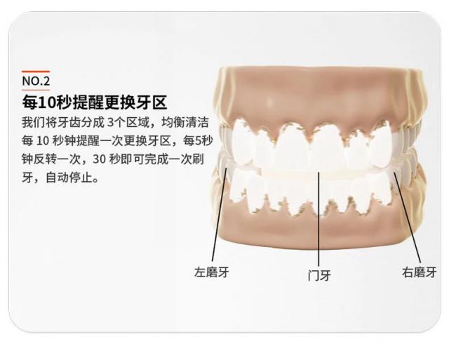 刷牙时,每 5 每秒翻一次,每一次 10 秒会发出滴滴声提醒你换个区域;