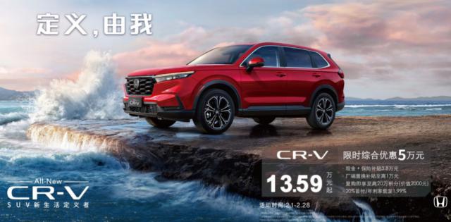 2025 年 2 月 1 日至 2 月 28 日本,东风本田又推出了新年特别活动,CR-V 只需 13.59 万元起,可以享受现金 保险补贴、工厂置换补贴、回购积分等诸多福利,叠加低首付、低利率的金融政策,综合优惠高达 5 一万元,进一步缩小了油电车型的价格差距。