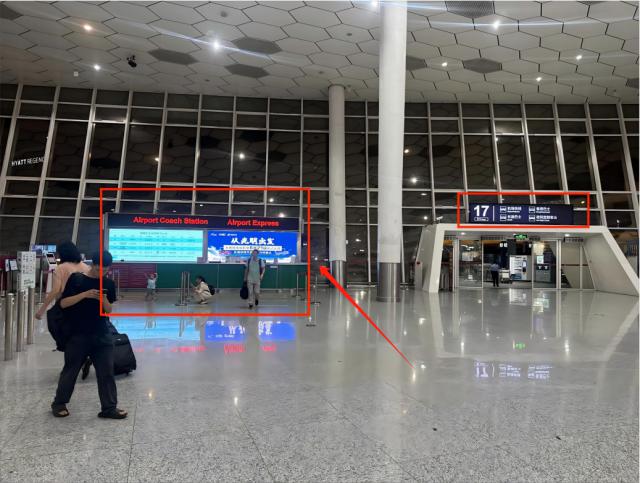 国内到达机场 2 层层交通中心 17 号门。到柜台咨询有关乘车信息,办理优惠购票。