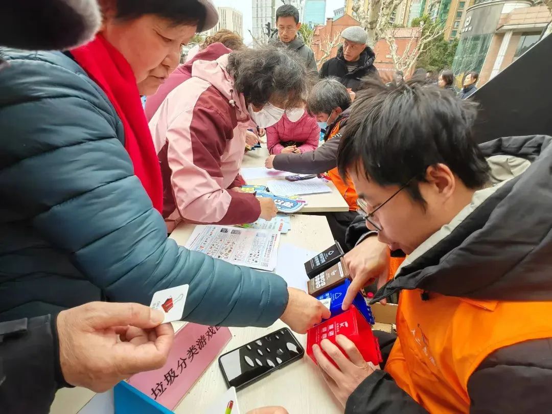除了会场的互动体验,志愿者还带领团队进行环保徒步公益之旅。来自居委会、物业、企业和商家的15名志愿者代表沿着石门二路打扫街道,分组进入周边商店志愿“入户行动”,分发分类指南并回答问题,引导商铺正确参与垃圾分类,进一步提高垃圾分类的主动性和积极性。