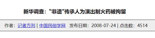 还有一种叫“药发木偶”的国家级非遗,一度被认为失传了,后来经过调查,发现还有老艺人会这门手艺。但这项非遗表演需要用到火药,于是尴尬的事发生了:老人前脚刚被政府邀请表演,后脚公安局就找上门来,催他销毁潜在的“作案工具”,甚至将他拘留。